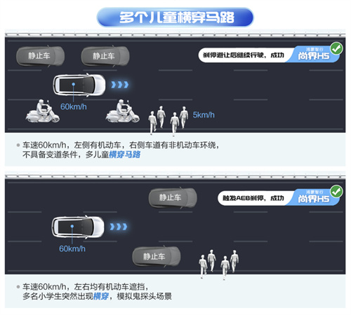 在测试中,尚界H5在多儿童横穿、鬼探头等场景中均能实现提前预判与及时制动,体现出多传感器系统在信息获取与决策响应方面的综合能力。