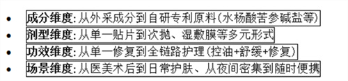 不"为上新而上新",不盲目追逐热门成分,而是基于自研原料,针对不同肤质、不同场景、不同需求,设计差异化的产品解决方案。清痘系列2.0解决的是"祛痘刺激性大"的问题,白膜次抛解决的是"医用敷料不便携"的问题,方胖子湿敷膜解决的是"面膜使用单一"的问题——每一款新品背后,都有明确的用户痛点和技术支撑。