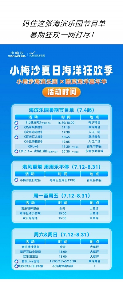 明星助阵:陈乐基、许秋怡等超燃空降,连续7周周末举办小梅沙夏日歌会;