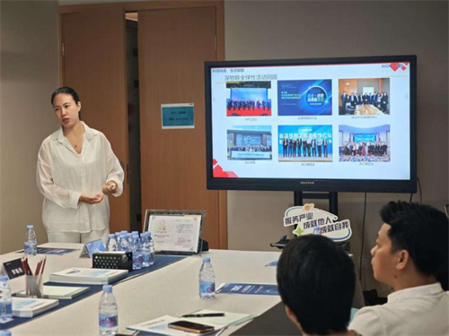 深圳市物联网协会秘书长晏俪萌介绍深圳市物联网协会以市场化手段助力企业突破传统‘援建’模式,构建‘国际市场+国内资源’双循环生态,提供从政策解读到落地执行的全周期出海服务。