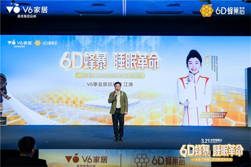 V6家居洞察年轻消费者的消费偏好和消费认知—材料科技才是舒适的根本,用科技造出好产品,让好产品自己说话。正因如此,江涛表示V6家居升级了全新slogan“用科技实现舒适生活”,6D蜂巢芯新品就是在这一理念下研发出的革新睡眠芯材技术的重磅产品。自上市以来火爆终端,从销售端验证了好产品品质,6D蜂巢芯床垫定义了好床垫的“757”行业标准,6D蜂巢芯沙发定义了好沙发的“6551”行业标准。