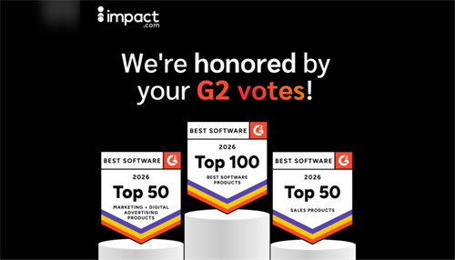 (2026年2月28日,上海讯)近日,全球合作伙伴经济的核心引擎impact.com宣布,在G2发布的“2026年度最佳软件奖”评选中,一举斩获多项极具分量的全球性荣誉。公司不仅成功入选含金量最高的 “Top 100 最佳软件产品”,更在细分赛道中脱颖而出,同时跻身“Top 50 销售软件”及“Top 50 营销与数字广告软件”榜单。